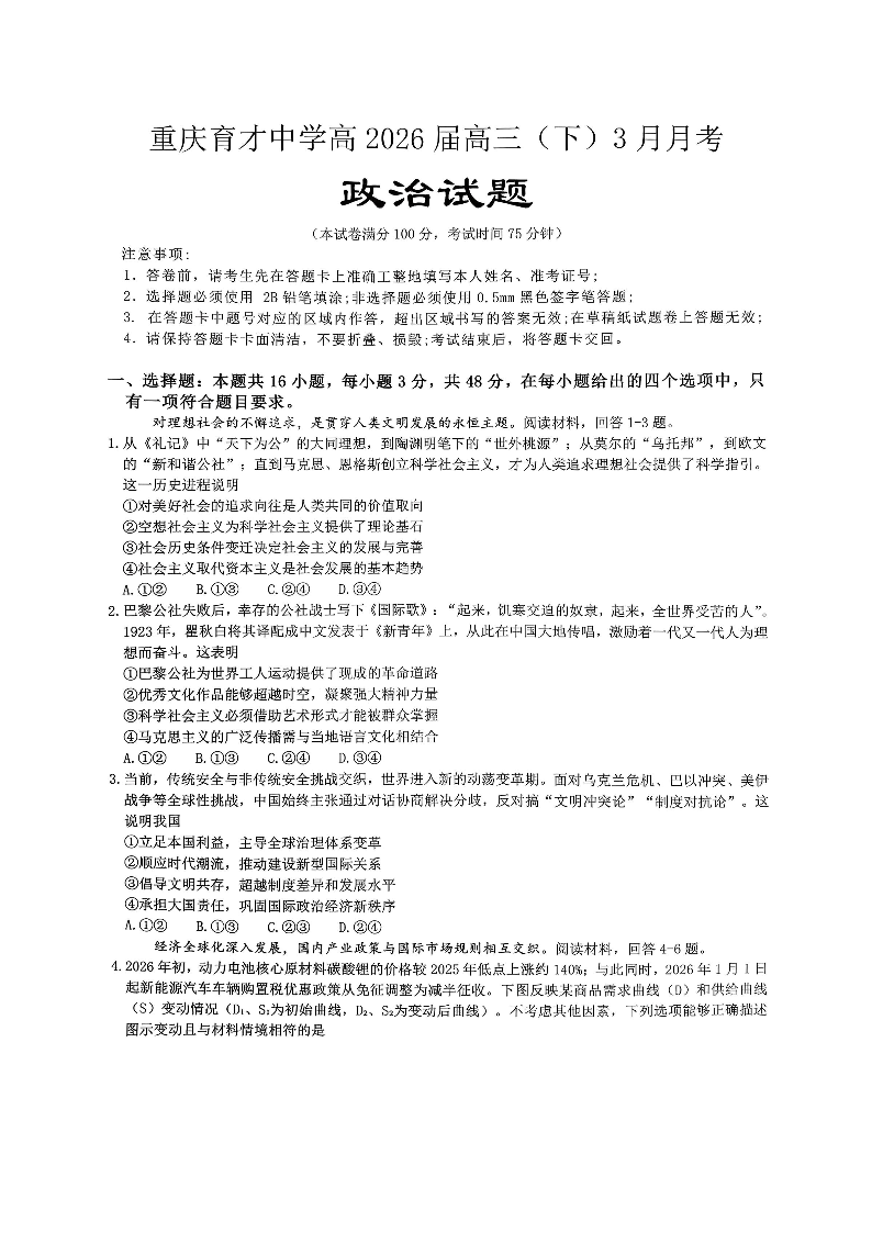 重庆育才中学高2026届高三(下)3月月考 政治.pdf