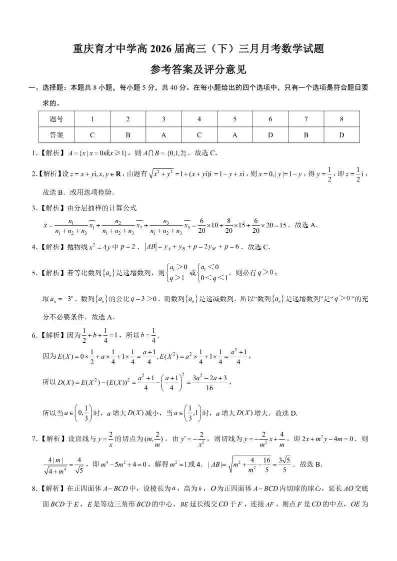 重庆育才中学高2026届高三(下)3月月考 数学答案.pdf