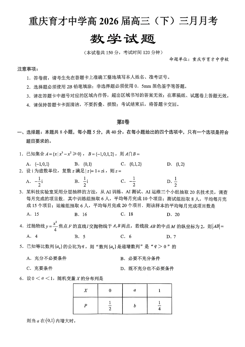 重庆育才中学高2026届高三(下)3月月考 数学.pdf