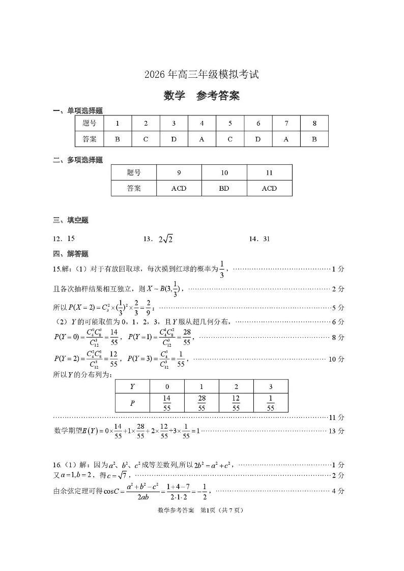东莞市2026年高三年级模拟考试 数学答案.pdf