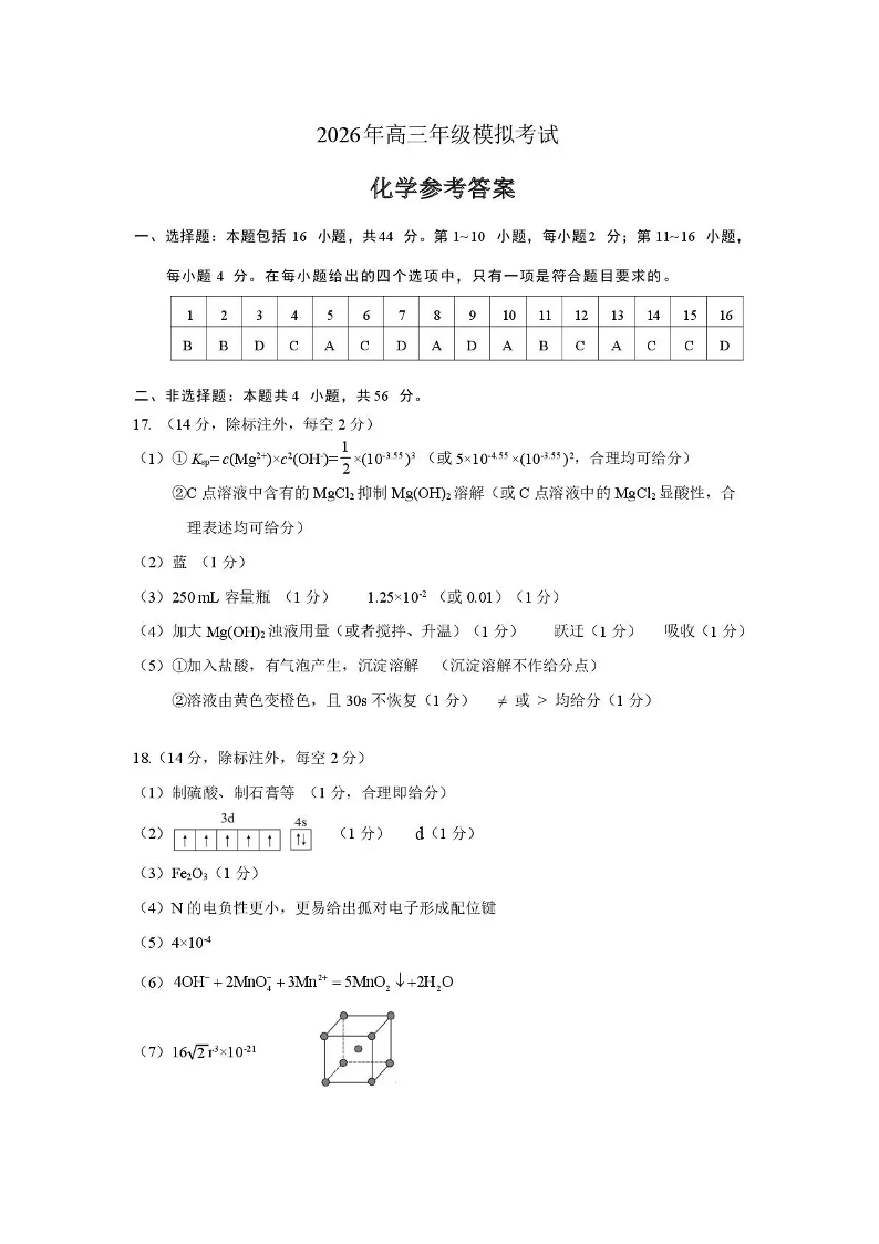 东莞市2026年高三年级模拟考试 化学答案.pdf