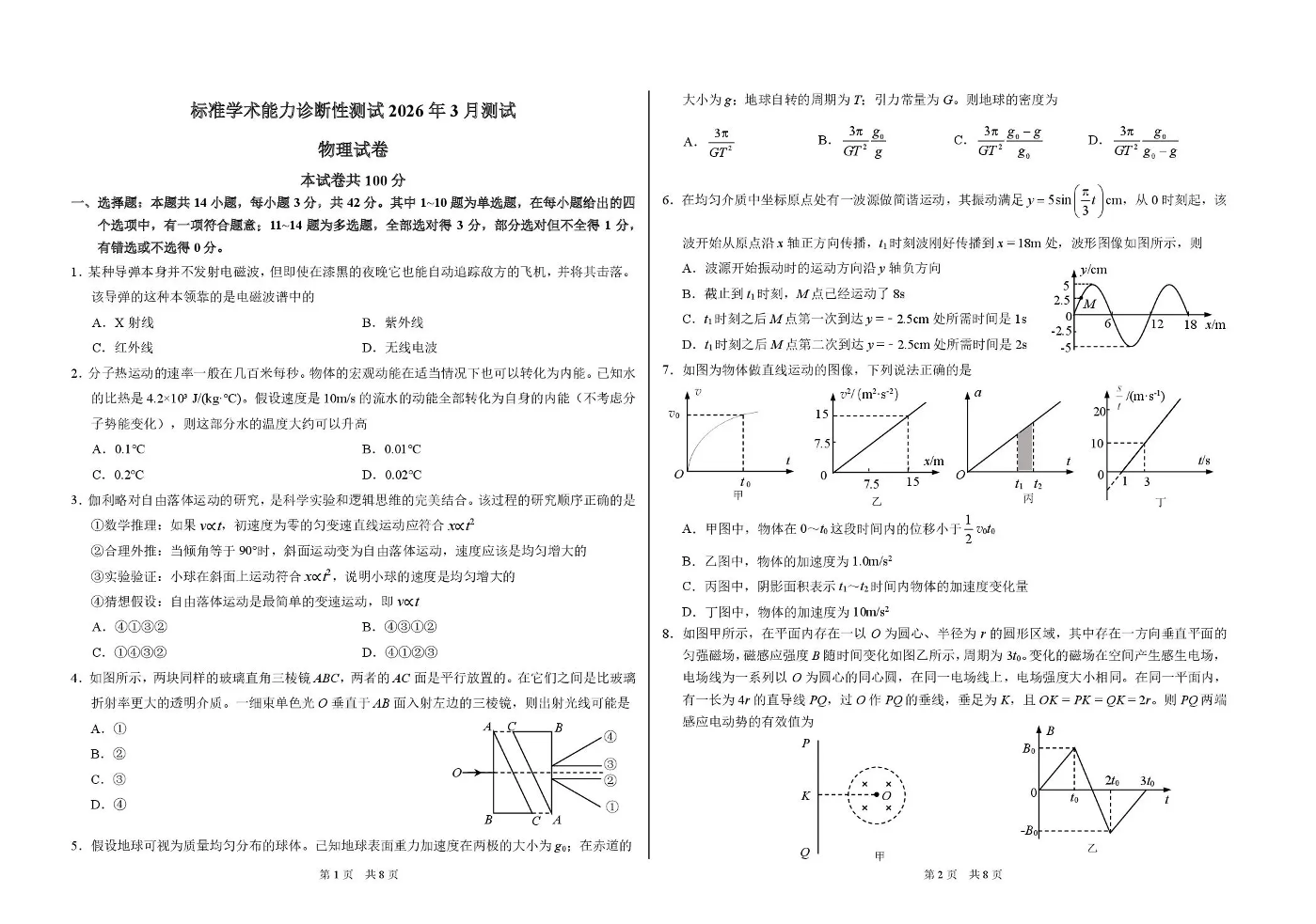 标准学术能力诊断性测试2026年3月测试 物理试题(含答案).pdf