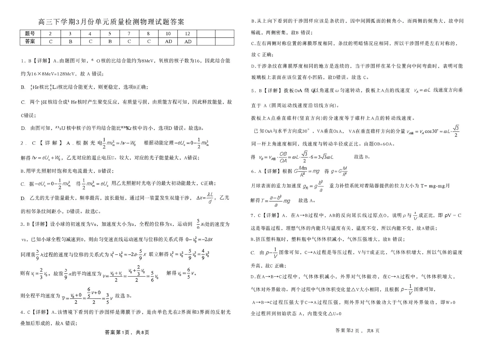 日照市第一中学2025-2026学年高三下学期3月份单元质量检测 物理答案.pdf