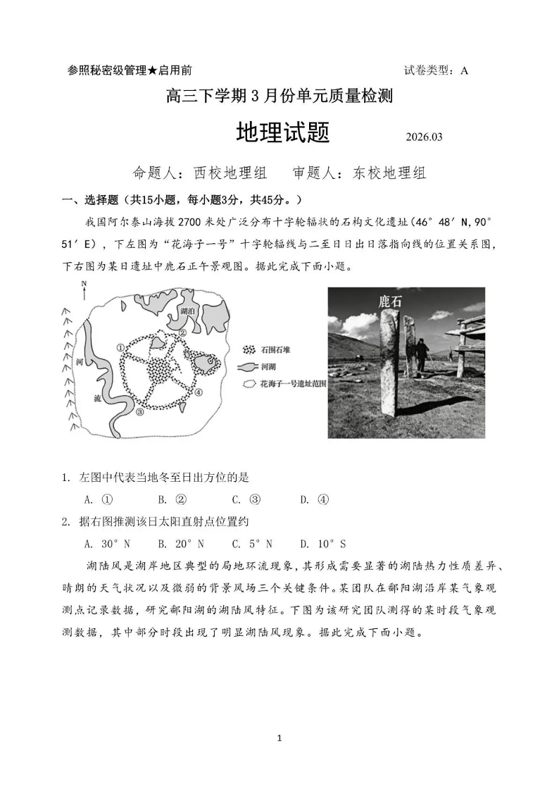 日照市第一中学2025-2026学年高三下学期3月份单元质量检测 地理.pdf