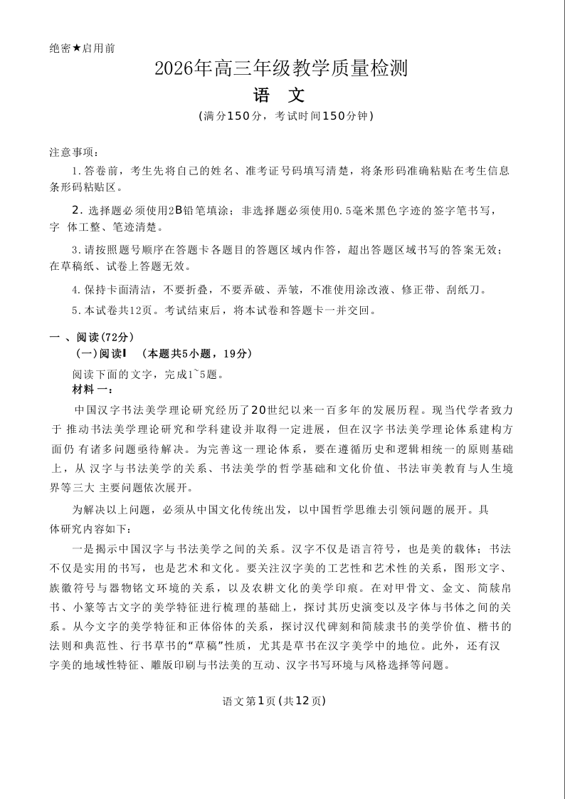 银川市、石嘴山市、吴忠市三市2026年高三年级学科教学质量检测 语文.docx
