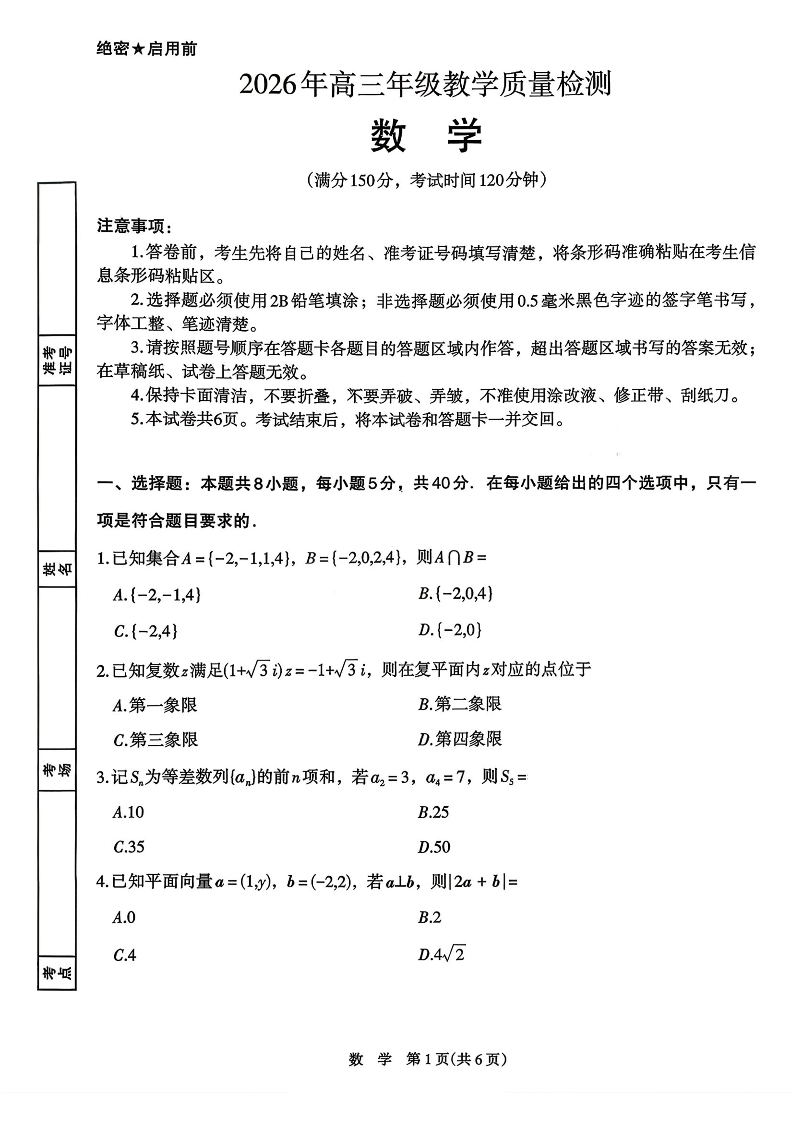 银川市、石嘴山市、吴忠市三市2026年高三年级学科教学质量检测 数学.pdf