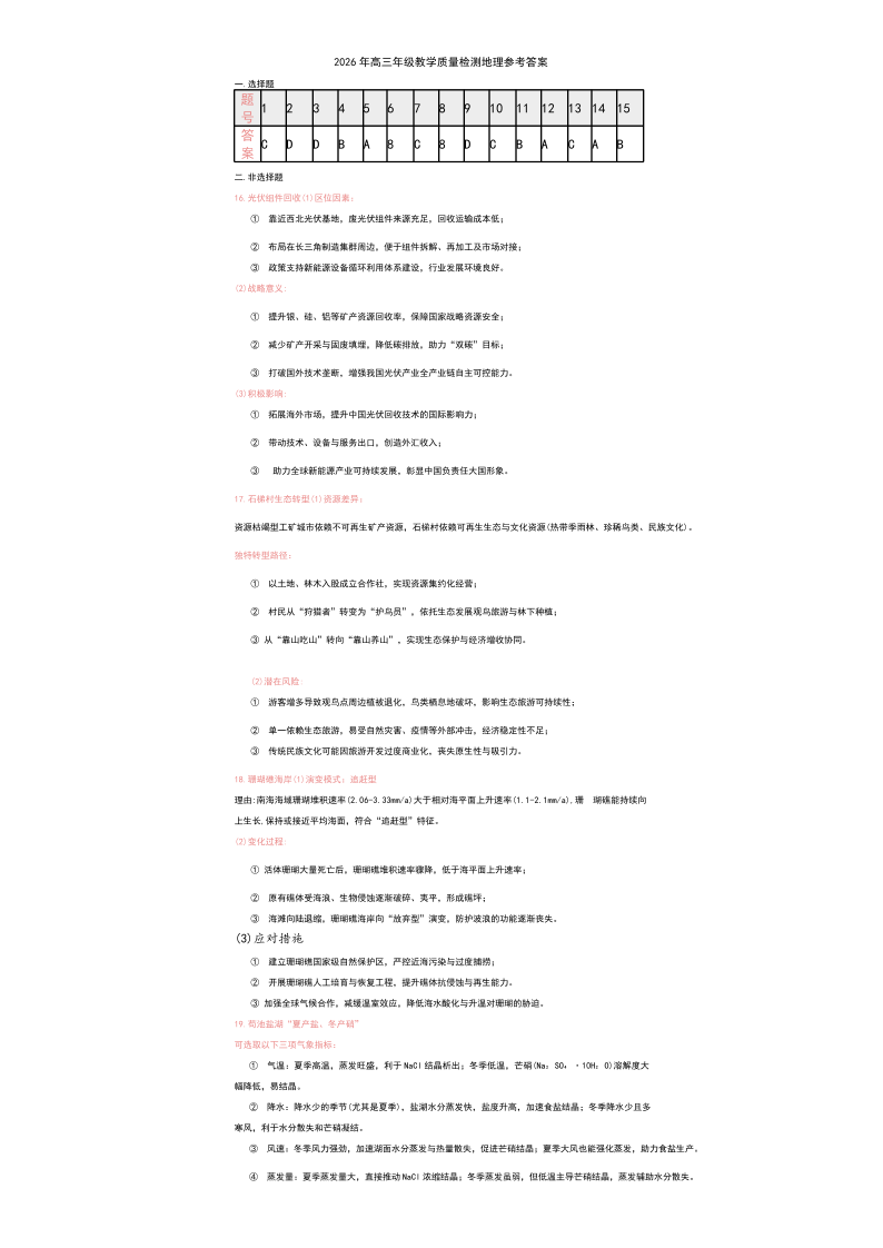 银川市、石嘴山市、吴忠市三市2026年高三年级学科教学质量检测 地理答案.pdf