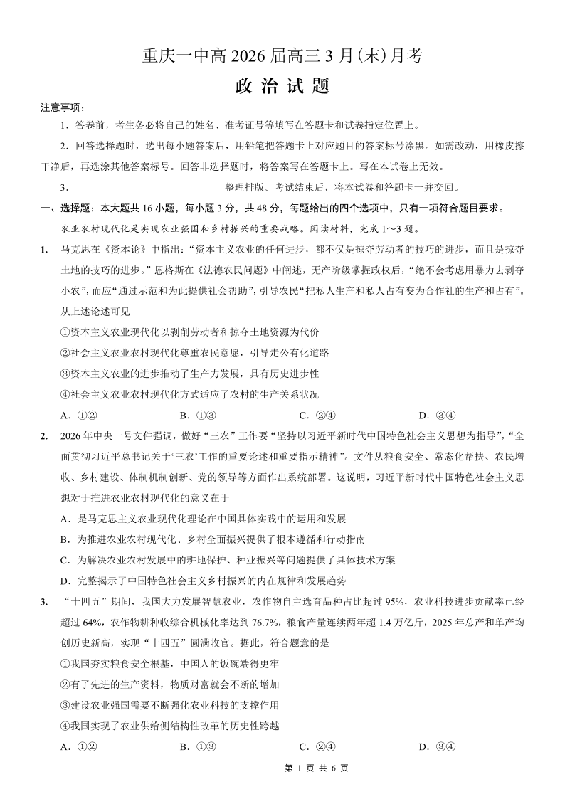 重庆一中高2026届高三3月(末)月考 政治.pdf