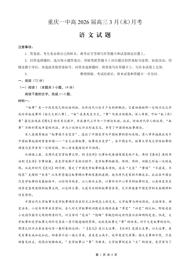 重庆一中高2026届高三3月(末)月考 语文.pdf