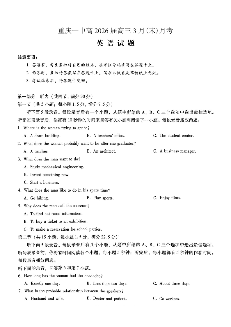 重庆一中高2026届高三3月(末)月考 英语.pdf