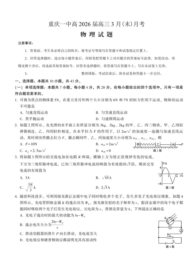 重庆一中高2026届高三3月(末)月考 物理.pdf