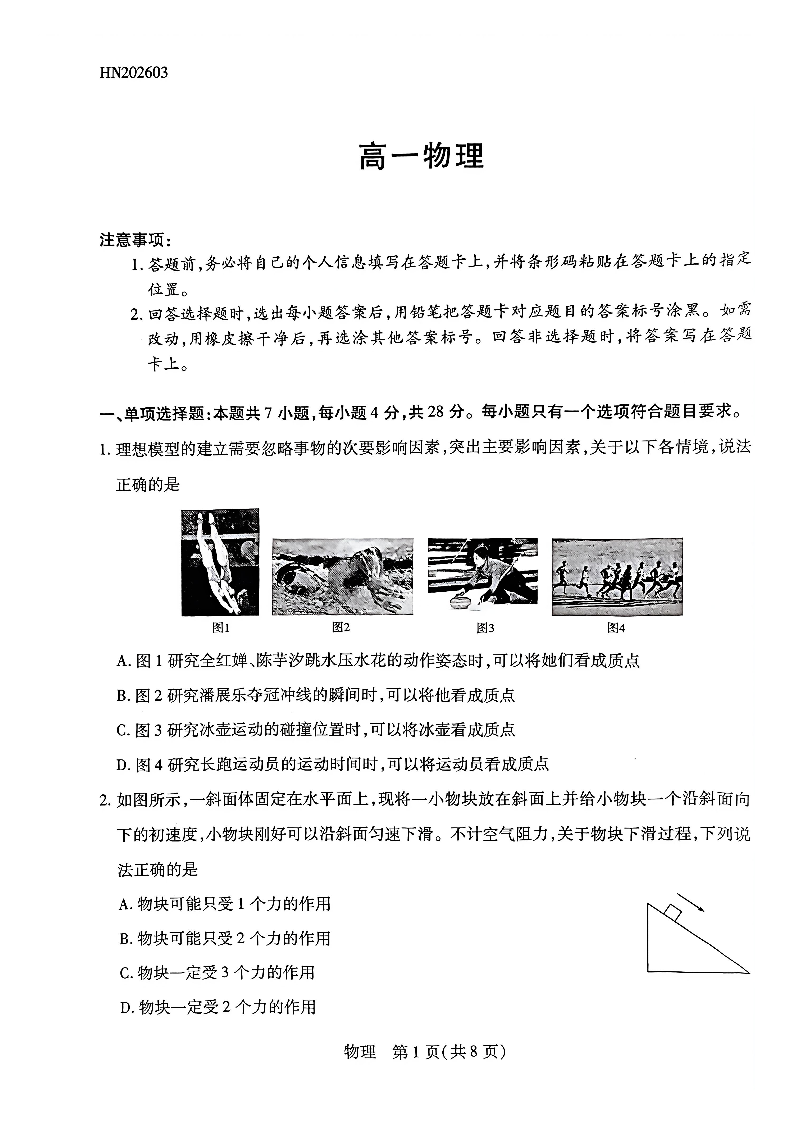 河南天一大联考2026年高一年级下学期3月大联考 物理.pdf