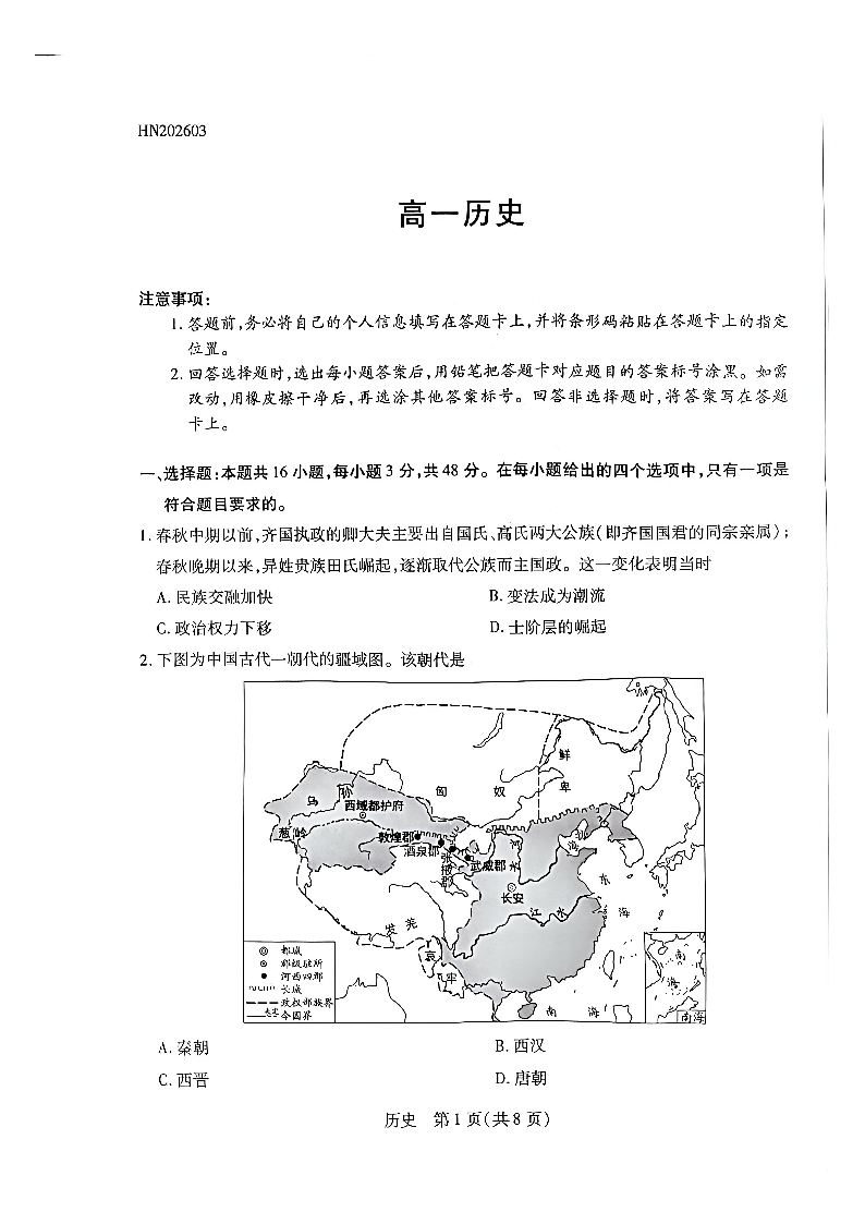 河南天一大联考2026年高一年级下学期3月大联考 历史.pdf