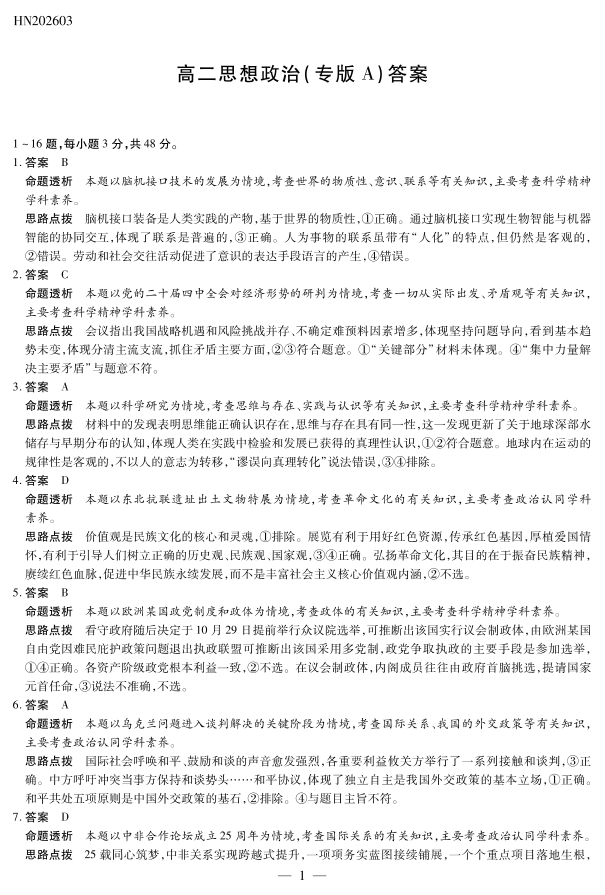 河南天一大联考2026年高二年级下学期3月大联考 政治答案.pdf