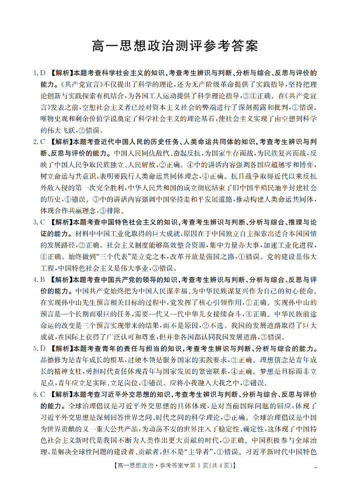 河北省邢台市2025-2026学年高一下学期3月月考 政治答案.pdf