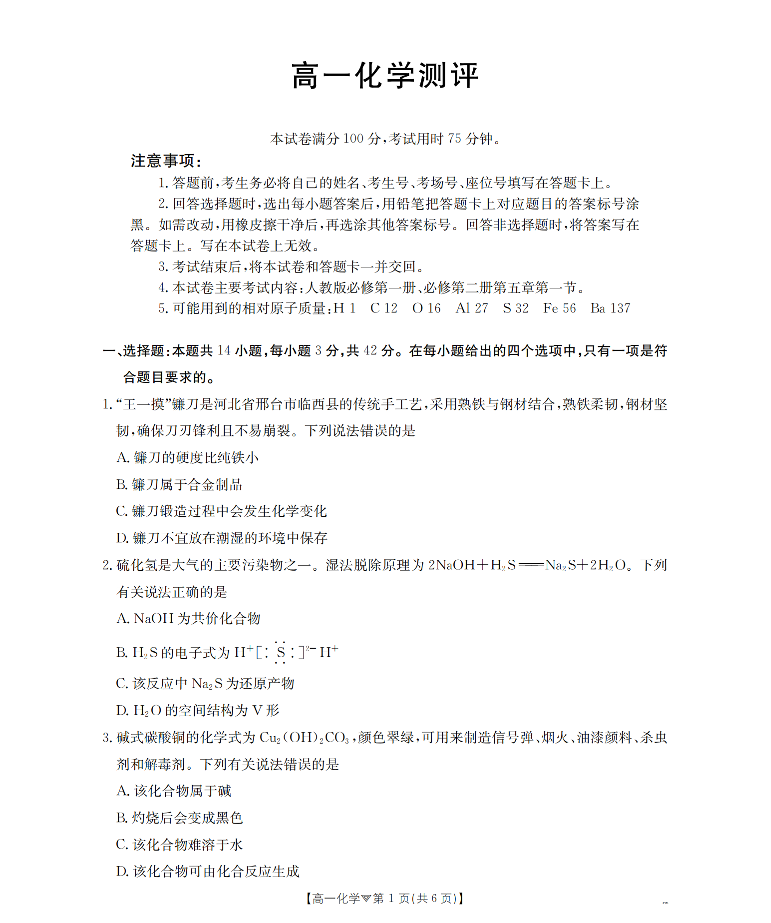 河北省邢台市2025-2026学年高一下学期3月月考 化学.pdf