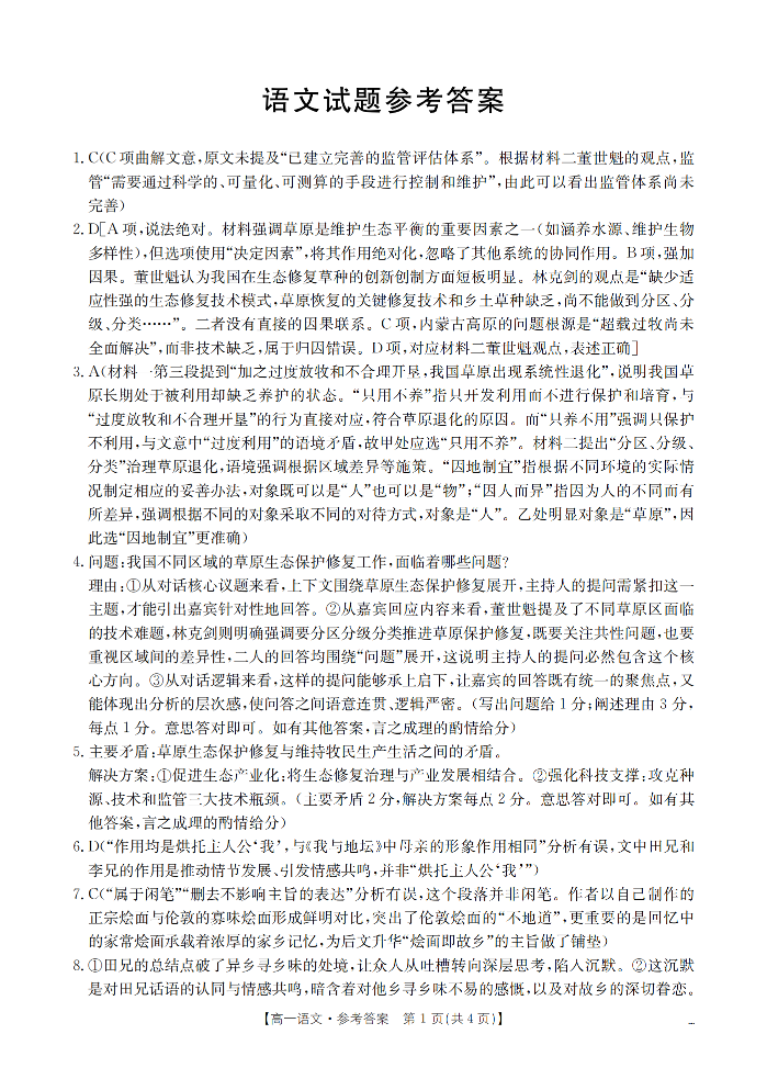 河北省定兴第三中学2025-2026学年高一3月开学联考 语文答案.pdf