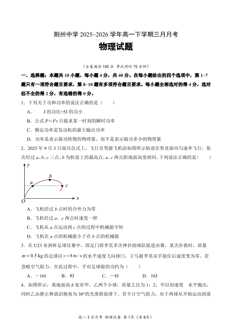 湖北省荆州中学2025级高一下学期3月月考 物理.pdf