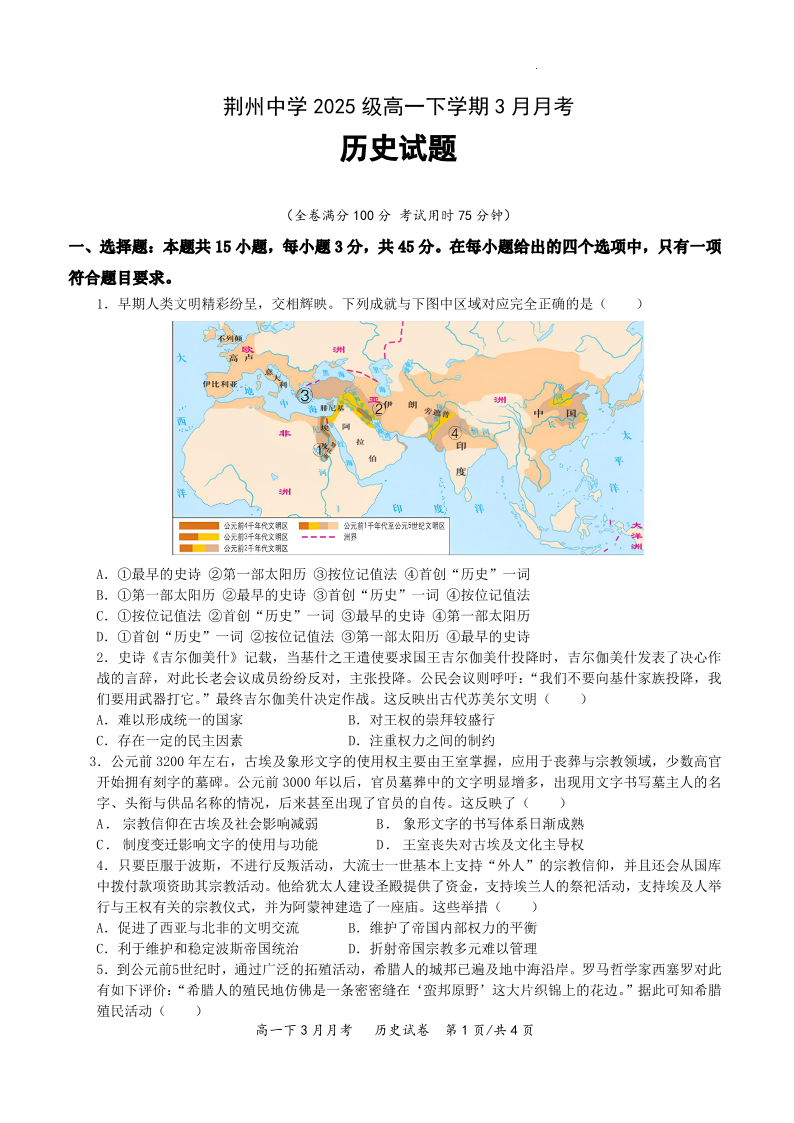 湖北省荆州中学2025级高一下学期3月月考 历史试题(含答案).pdf