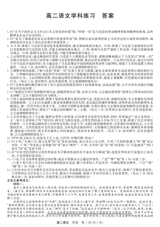 浙江四校(含精诚联盟)2025-2026学年高二下学期3月阶段检测 语文答案.pdf