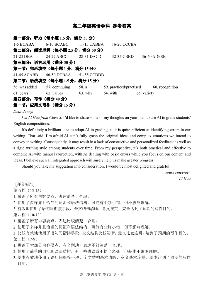 浙江四校(含精诚联盟)2025-2026学年高二下学期3月阶段检测 英语答案.pdf