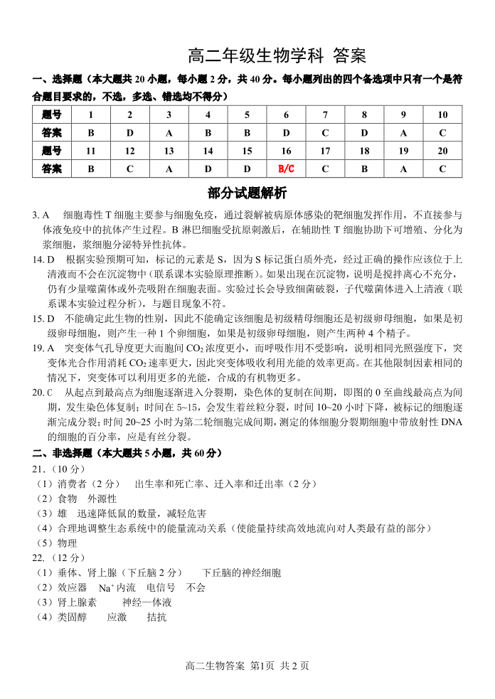 浙江四校(含精诚联盟)2025-2026学年高二下学期3月阶段检测 生物答案.pdf