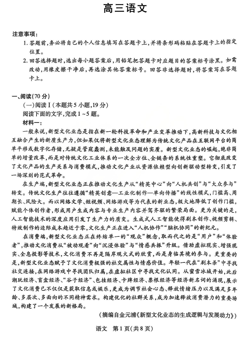 山西省阳泉市2026年3月高三年级第一次模拟测试 语文.pdf