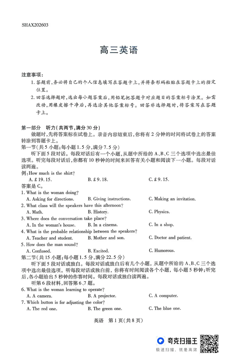 山西省阳泉市2026年3月高三年级第一次模拟测试 英语.pdf