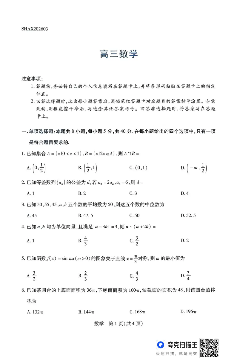 山西省阳泉市2026年3月高三年级第一次模拟测试 数学.pdf
