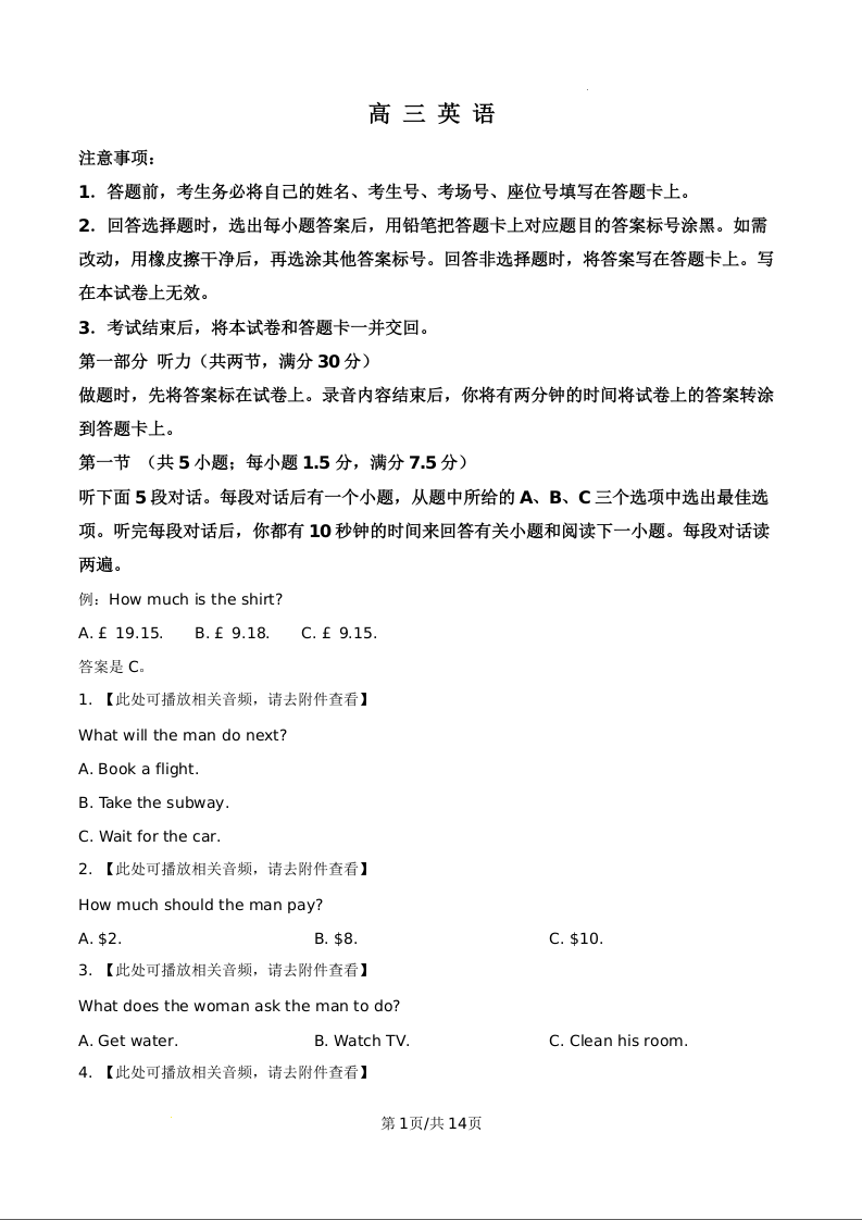 广西崇左市2026届高三下学期3月一模(崇左一模)英语.docx