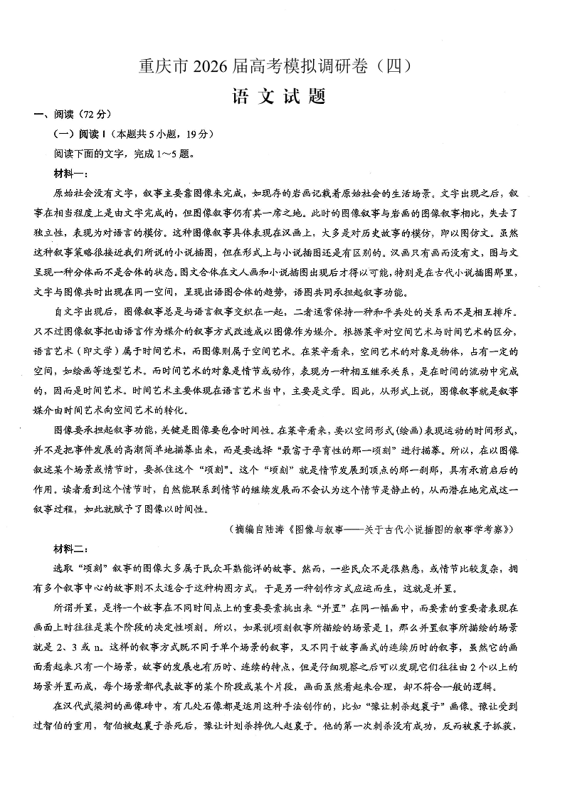 重庆市2026年普通高等学校招生全国统一考试康德调研(四)语文试题(含答案).pdf