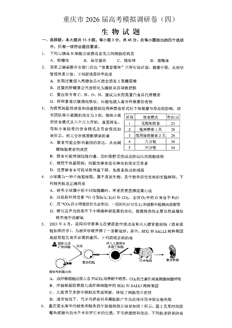 重庆市2026年普通高等学校招生全国统一考试康德调研(四)生物试题(含答案).pdf