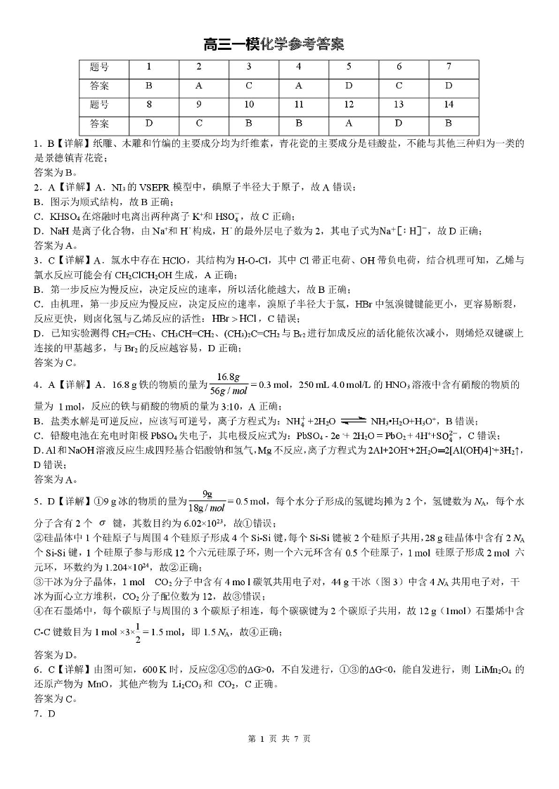 上饶市2026届高三年级第一次高考模拟考试 化学答案.pdf