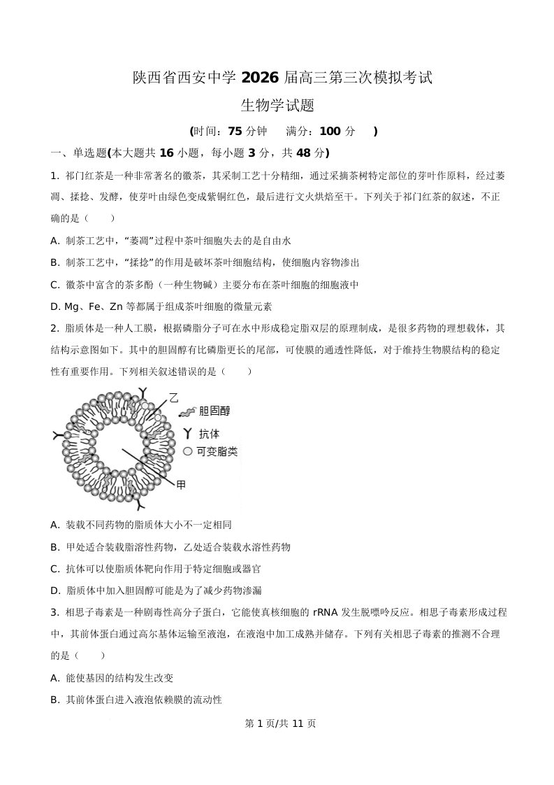 陕西省西安中学高2026届高三第三次模拟考试 生物.docx