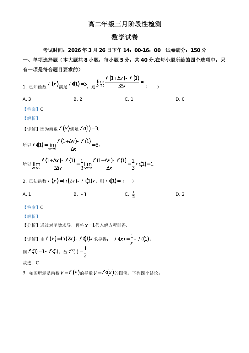 武昌实验中学2025-2026学年高二年级三月阶段性检测 数学答案.docx
