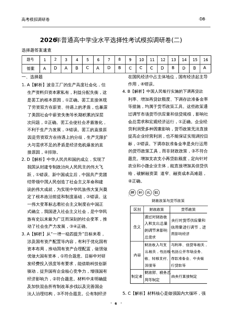 辽宁省衡水金卷2026年普通高等学校招生全国统一考试模拟调研卷(二)政治答案.pdf