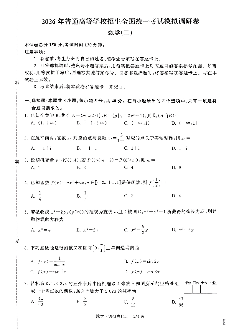 辽宁省衡水金卷2026年普通高等学校招生全国统一考试模拟调研卷(二)数学.pdf