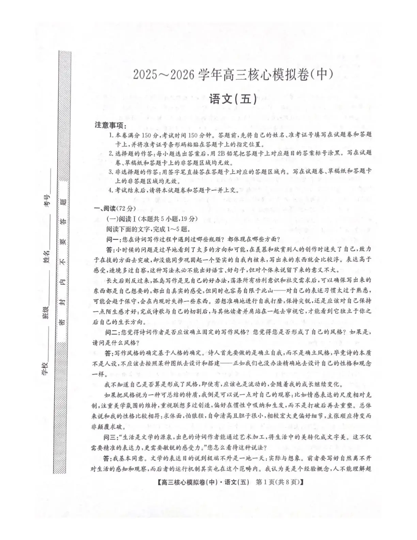 2025~2026学年高三核心模拟卷(五)语文.pdf