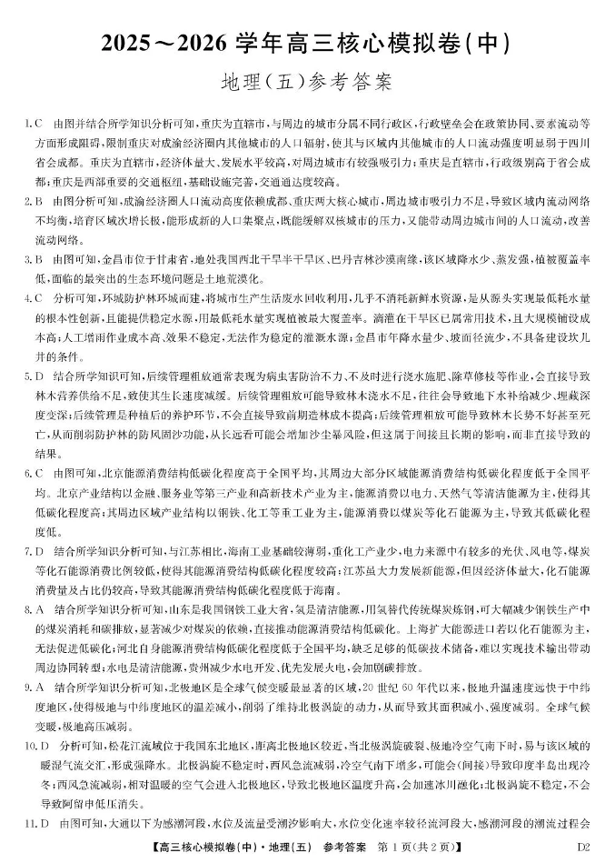 2025~2026学年高三核心模拟卷(五)地理答案.pdf