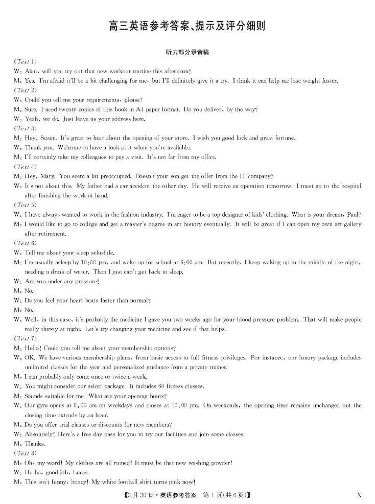 九师联盟2026届高三下学期3月30日质量检测 英语答案.pdf