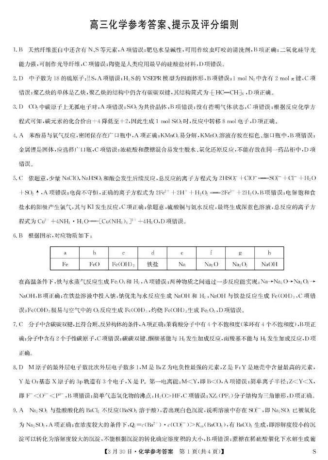 九师联盟2026届高三下学期3月30日质量检测 化学答案.pdf