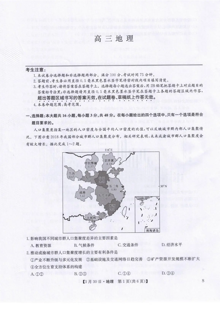 九师联盟2026届高三下学期3月30日质量检测 地理.pdf