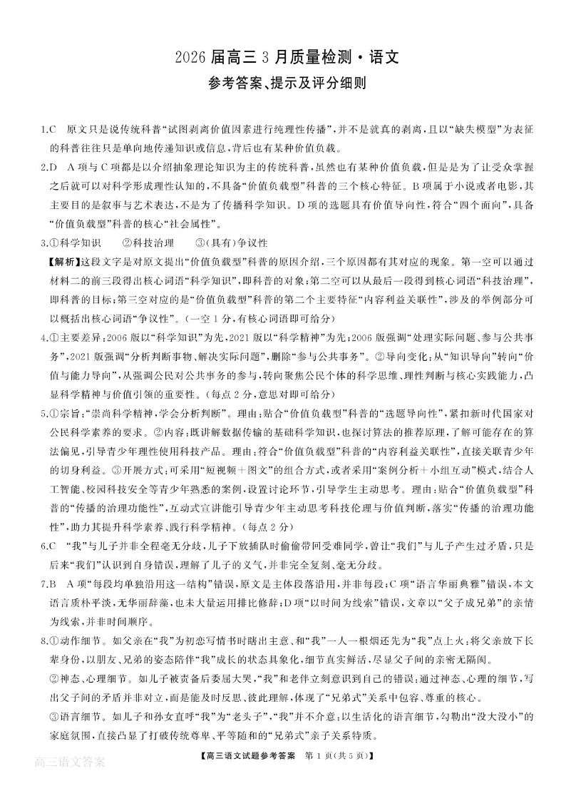 湖南省湘西州、湘潭市2026届高三3月质量检测 语文答案.pdf