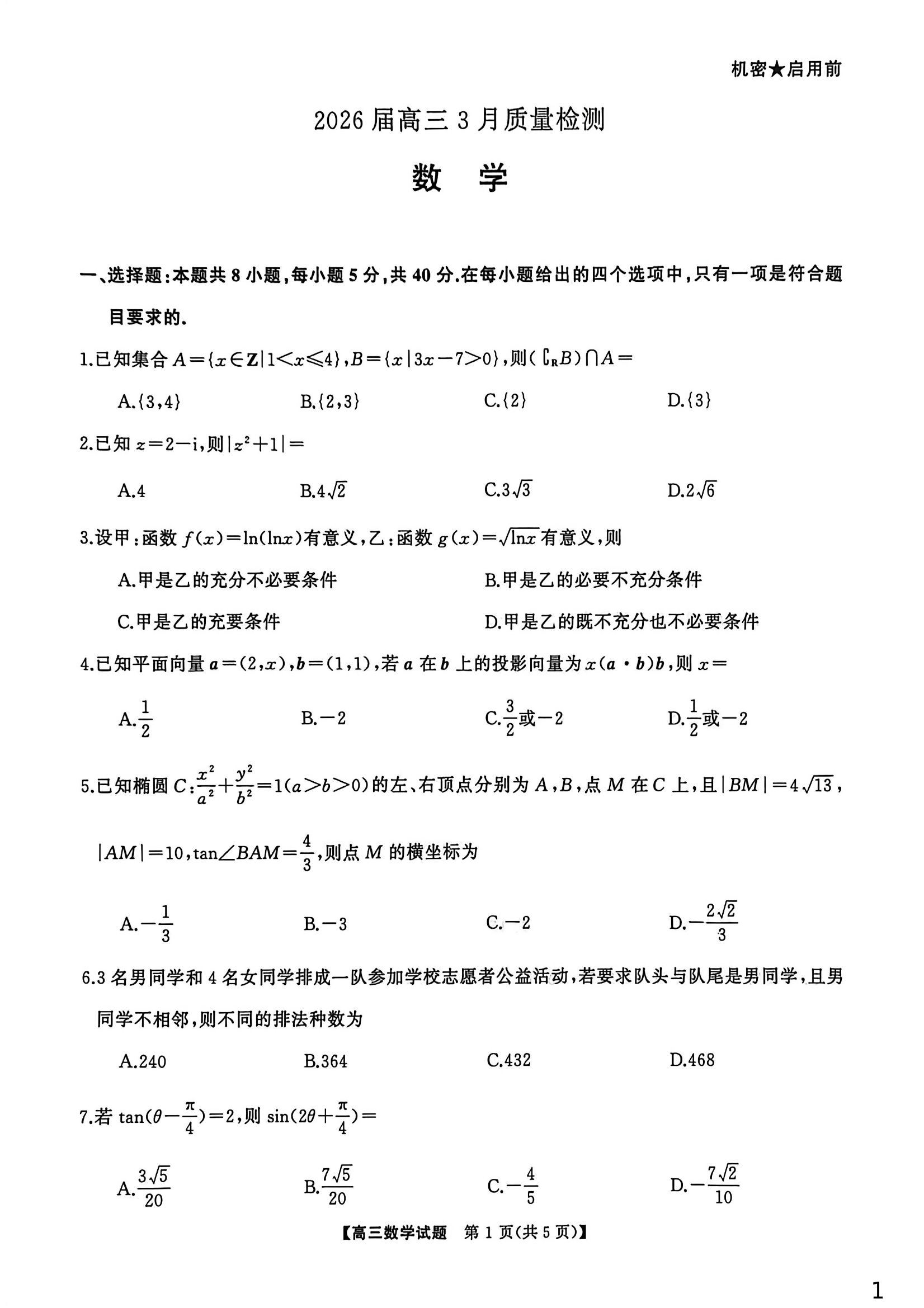 湖南省湘西州、湘潭市2026届高三3月质量检测 数学.pdf