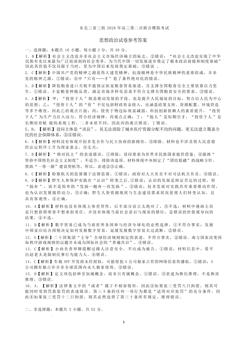东北三省三校2026届高三下学期第二次模拟考试 政治答案.pdf