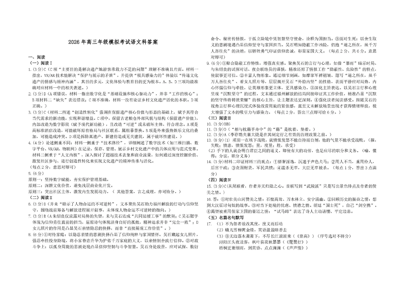 东北三省三校2026届高三下学期第二次模拟考试 语文答案.pdf
