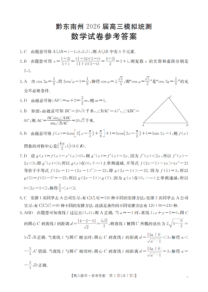 贵州省黔东南州2026届高三下学期模拟统测 数学答案.pdf