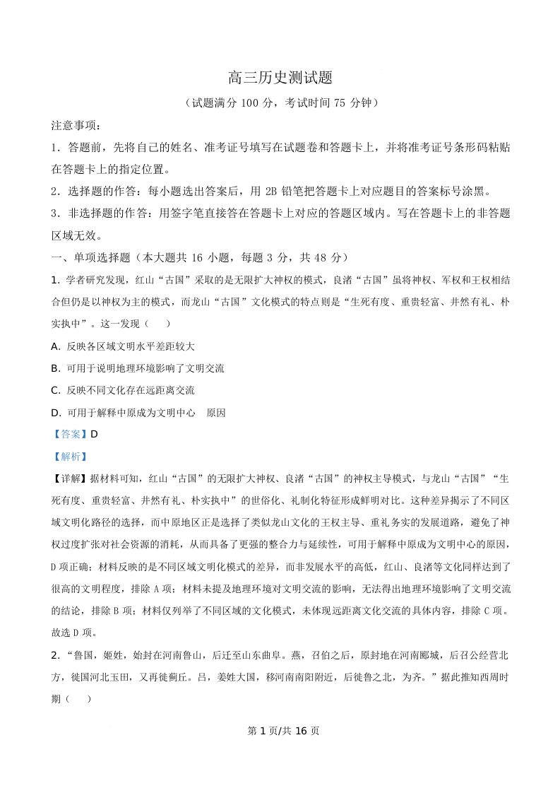 渤海大学附属高级中学2026届高三下学期第二次模拟预测 历史答案.docx