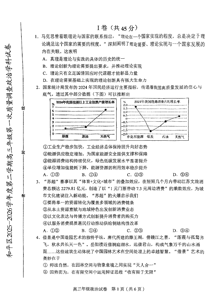 和平区2025-2026学年度高三年级第一次质量检测 政治.pdf