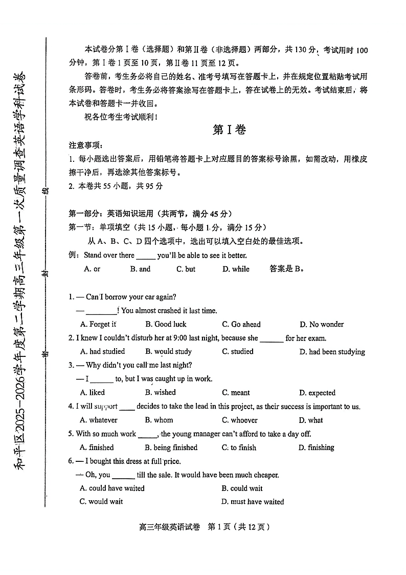 和平区2025-2026学年度高三年级第一次质量检测 英语.pdf